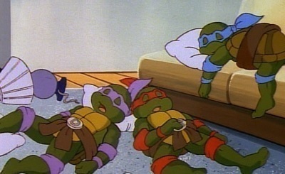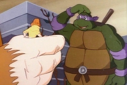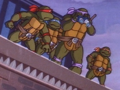 ![]() 1987: During a report on mysterious thefts, April O' Neil met the TMNT after they saved her from a group of punks. After awakening in their home, Hamato Yoshi told April how he was changed into a rat named Splinter at the same time the Turtles were mutated into the wisecracking heroes they are! She and the Turtles then set out to discover who was burglarizing all those technological companies, which quickly lead them to the Foot Clan.; After the defeat of his robotic Foot Soldiers, Shredder turned two of his punks, Bebop and Rocksteady into mutants. The Turtles also learned that Shredder is actually Oroku Saki, the man who had usurped Splinter's leadership of the Foot.; Shredder enlisted the help of a mad scientist named Baxter Stockman whose invention, the Mouser nearly spelled doom for Splinter. Unbeknownst to him, Shredder's alien sidekick Krang sabotaged his plans by helping Michaelangelo.; Shredder then brought forth two of Krang's Rock Warriors from his homeworld in Dimension X. Teenage type creatures known as Neutrinos also arrived from the portal and soon teamed up with the Turtles and helped defeat the villains once again!; In the season's climax, Shredder built Krang an android body, which nearly caused the end for the city when he grew into a monster-sized robot. Luckily, the Turtles quickly came to the rescue in the Turtle Blimp. Krang opened the gateway to Dimension X in attempt to bring forth his minions, when the TMNT arrived to fight while Donatello reversed the flow of the portal, causing the Technodrome to pull itself into the portal while the Turtles escaped. ![]() 1988: With the Technodrome trapped in Dimension X, Shredder returned to seek revenge on the Turtles. Since he wasn't given any further help from Krang, he sought the help of Baxter Stockman who aided him in locating the Eye of Sarnath, a magic alien crystal divided into three pieces.; After making one screw up too many, Baxter was sent to Dimension X to be killed, while Bebop and Rocksteady came back to Earth. Krang attempted to vaporize Stockman, however, a one-in-a-thousand glitch caused the mad scientist to be cross-mutated with a fly.; At one point, Shredder asked for more mutagen, but it was sent to the wrong place and four frogs in a Florida swamp were mutated. Shredder trained the frogs to be his loyal minions, while leading them to believe he was a goodguy. Fortunately though, Splinter and the TMNT were able to set the frogs straight by proving just how evil The Shredder truly was!; Donatello gave Master Splinter an opportunity to be human again, only it didn't last long and he changed back into his rat form... in public.; April was temporarily transformed into a humanoid cat due to the side effects of a teleportation beam. April's co-worker/friend Irma got a chance to meet the Turtles in that episode.; The Technodrome returned to Earth, but Don managed to send it down towards the center of the Earth. ![]() 1989: This season had over 40 episodes; All except two involved Shredder and Krang plotting to return the Technodrome to the surface. Sometimes certain characters would have substitute voices for a few episodes. The TMNT met The Rat King, Leatherhead, Casey Jones, Lotus Blossom, Usagi Yojimbo and a young man named Zach who was granted the position of an honorary Ninja Turtle. Most of these characters and ones from the first 2 seasons made return appearances within this season. Shredder and Krang once attempted to control the city by reversing the gravity flow, which caused some major chaos.; In the heat of a battle at Cybertech Labs, Splinter and Shredder were accidentally subjected to a beam that caused their minds to be transferred into one another's body. Shredder sought to kill the Turtles in the guise of their master while Splinter sought to reverse the mind transfer in order to save them.; Irma became closer with the Turtles after she was enlarged into a 50 foot tall woman on her birthday and they had to cure her before the army could take her into custody.; Michaelangelo became human for one episode thanks to a batch of cookies contaminated with anti-mutagen, only the mutation was highly unstable and he kept switching between human and mutant turtle form.; Baxter Stockman returned to exact his revenge with the help of an alien spaceship that supplied him with a mutation ray-gun, which he used to turn Shredder into a housefly and Mikey into a gerbil.; In the season finale, the Technodrome returned to the surface again. Krang almost sent Earth to Dimension X, but Donatello managed to send the Technodrome through the portal instead! ![]() 1990: Ten of these episodes were the series' last weekday afternoon lineup. The plots in these adventures were very goofy ones, such as Leonardo and Michaelangelo being turned into little children by an age reversing serum of Krang's, so he could sell them to an alien zookeeper.; Bebop and Rocksteady were disguised in holographic cloaks to make them appear human so they could sneak into Channel 6 and plant rocket boasters in the basement, but they wound up becoming program execs for the TV station.; In one peculiar episode the Turtles had to keep a baby Neutrino safe from Shredder and his mutant punks.; Krang created a ray that altered humans' personalities, making them act like timid rabbits. It was up to Leonardo and Raphael to find the antidote, which could only be found in a strange fairy tale dimension. Along the way, they met Hokum Hare, from The Tortoise and the Hare. With Hokum's help, the Turtles retrieved the crystal and saved Earth.; In the following episode, Hokum discovered Shredder and his goons were plotting to take over the future via a train-powered temporal wave distortion. Hokum informed the TMNT who hitched a ride on the train to the year 2036, where they discovered that their older selves were no more than a bunch of crodgedy old farts! CBS began airing the show on Saturday Morning two episodes in a row each week. In the first half 