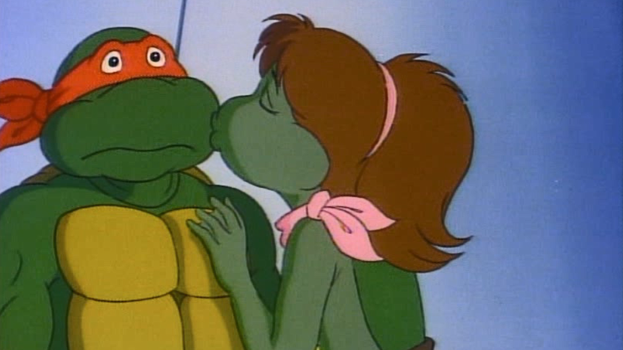 #17) During a line of dialogue, a Turtle's mouth flashes a different shade of green than the rest of his body.
