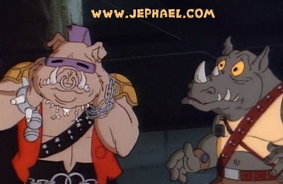 #28) Shredder insults or harms Rocksteady and Bebop for bumbling up their plans.