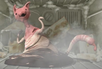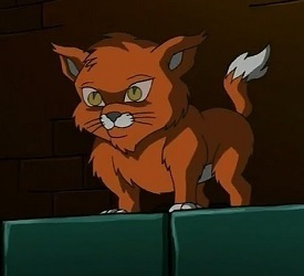 In the basement of The Second Time Around store 4Kids Donatello sits quietly at his computer with 4Kids Michelangelo's pet cat Klunk sitting in his lap.
