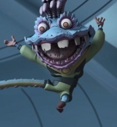 4Kids Raphael is beyond shocked to see Fugitoid in the clutches of a gross looking blue and purple creature.| Nickelodeon CGI TMNT Earth (Dimension F); New York City, NY - May 4TH, 2024 |